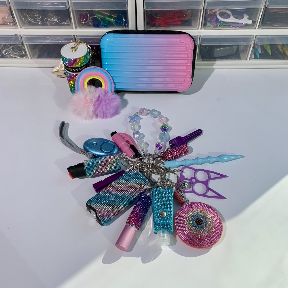 Stylish Brown Leopard Print Sel Defense Keychain Set
